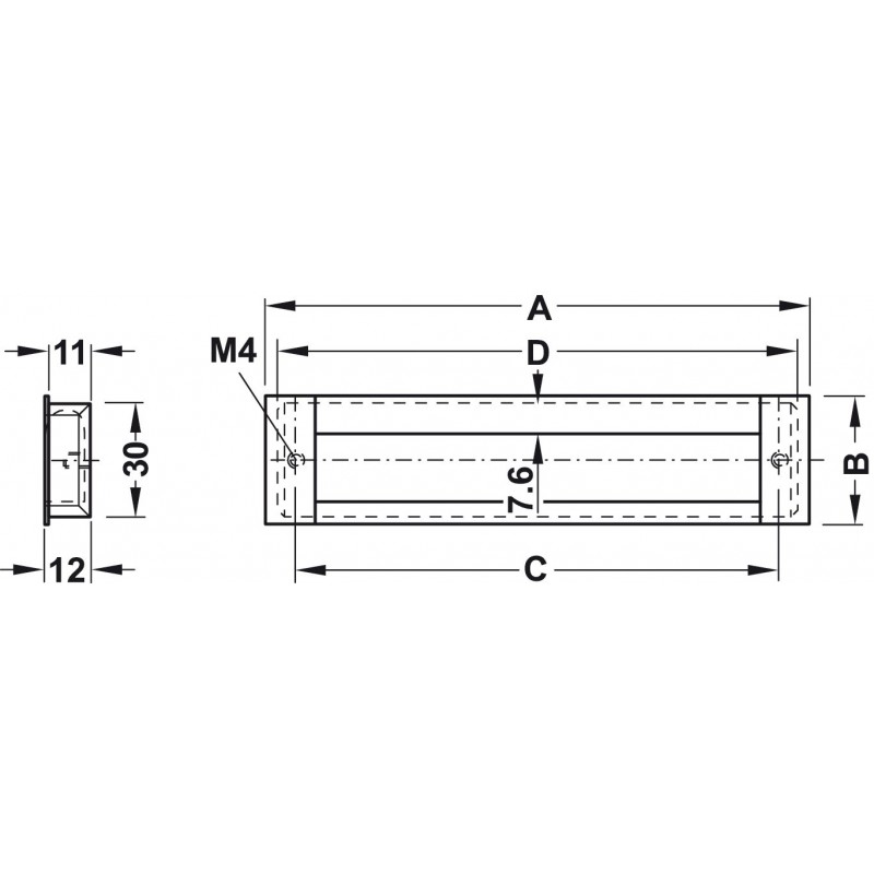 Muschelgriff, aus Zinkdruckguss, Rückteil aus Aluminium, rechteckig
